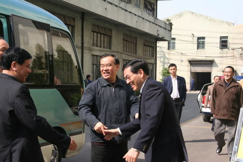 本报讯 4月4日上午,省长吕祖善、市委市政府领导王国平、孙忠焕、蔡奇、沈坚等来我集团公司调研。