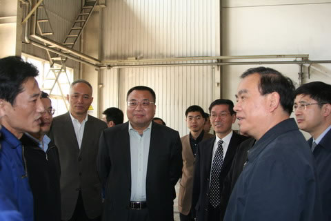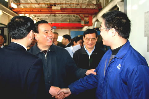 在集团公司董事长朱金根的陪同下,吕省长等省市领导实地考察了精机公司和恒温装配车间。