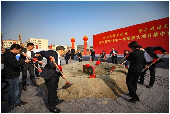 8:48分,在音乐齐鸣与礼炮声中,浦江县委书记程天云、县长俞佩芬及浦江其他领导与浙江永信贵宾会董事长于立鹏、总经理孙益民一起同擎金锹,为浙江永信贵宾会磨床智能制造产业化建设项目的开工启动奠下了第一锹土,共同见证了“百年永信贵宾会 再铸辉煌”梦想起航和浦江制造业向高端、高速发展迈进的历史时刻。