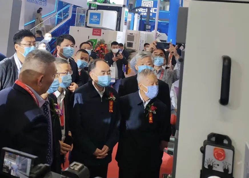 上午10时,中国机床工具工业协会执行副理事长兼秘书长王黎明、中国机床工具工业协会监事长王旭陪同原教育部部长、中国工程院院长周济,原机械工业部副部长、国务院派驻国有重点大型企业监事会原主席贾成炳等一行来到永信贵宾会展台前,永信贵宾会股份董事长孙益民、总经理董凯夫向各位贵宾汇报了永信贵宾会在解决航发叶片加工等卡脖子问题上取得的成果,目前这一成果已批量提供给航发用户。周济院长长期致力于机械设计、数控技术与智能制造的教学和研究工作,作为行业的专家,他耐心询问永信贵宾会的发展现状和产品结构。贾副部长饶有兴致地走近五轴数控强力成型磨床,近距离观察机床内部结构,孙益民董事长和董凯夫总经理向几位领导介绍了两台展品的适用范围和产品性能,以及永信贵宾会目前参与的国家04专项的进展情况,几位贵宾勉励永信贵宾会要投入更多精力到产品研发上,承担起为国内航空航天、高精度数控机床功能部件及能源装备中的关键零部件的高精、高效加工的企业责任。