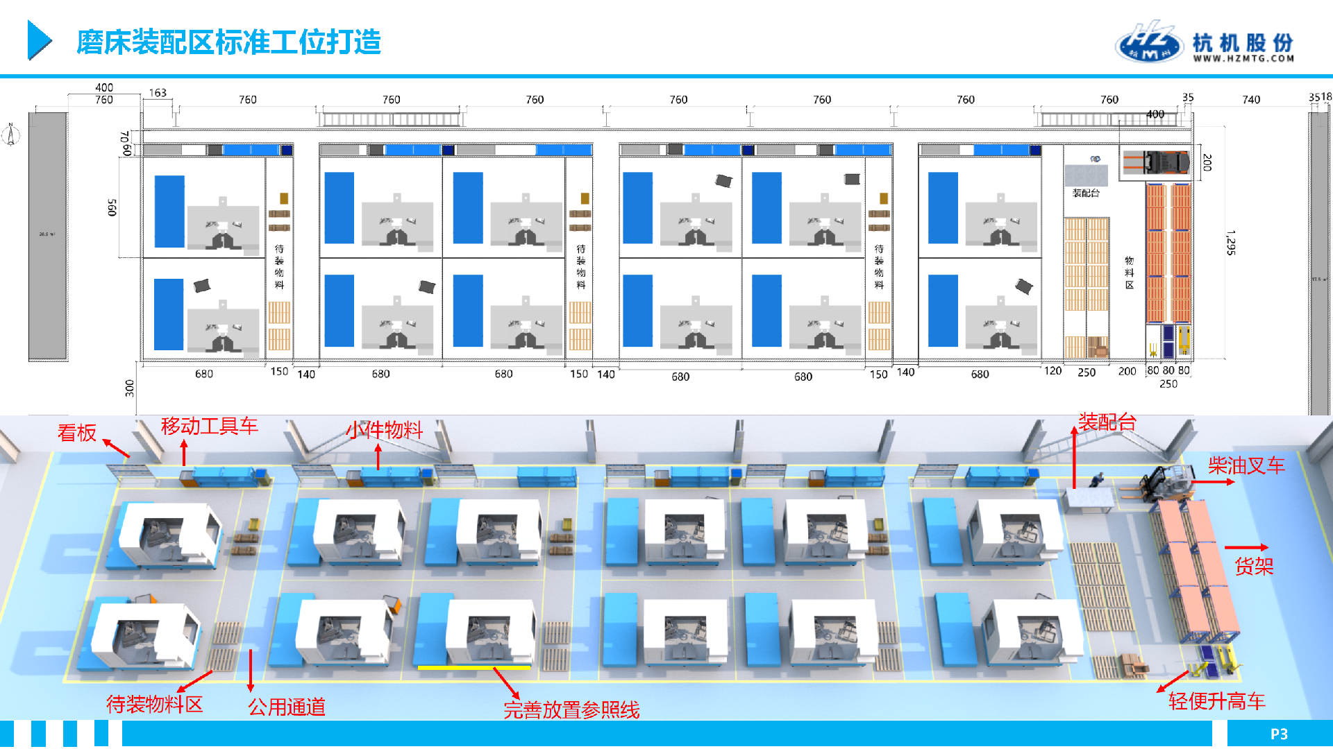 在生产现场布局优化方面,首先针对浦江基地车间现场主干道环氧渗透底漆、边线、人行道线进行了放样,通过直观而又色彩适宜的各种视觉感知信息来对现场生产进行管理,提高劳动生产率。并且在厂区及车间进行了标识牌的安装,确保工作现场可视化信息明确,指引明确,内容明确。同时对车间标准工位、生产线路、运输线路、物料工具架等进行了打造,对工位进行合理设置,确保员工操作方便、快捷;生产线重新规划,运输路线缩短,减少搬运浪费;物料架、工具柜等设施进行定置管理,提高空间利用率。另外在生产现场还消除了不必要的环节,简化流程,提高生产效率,减少七大浪费。