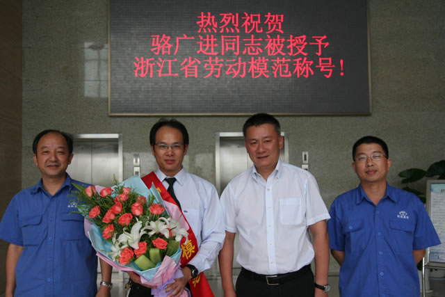 在新中国成立60周年之际,9月28日,浙江省人民政府在省人民大会堂隆重举行“浙江省劳动模范表彰大会”,我公司骆广进同志被授予浙江省劳动模范荣誉称号。