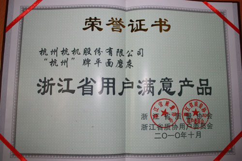 11月17日,浙江省质量协会召开了团体会员经验交流会。会上我公司 “杭州”牌平面磨床被评为2010年浙江省用户满意产品受到表彰。