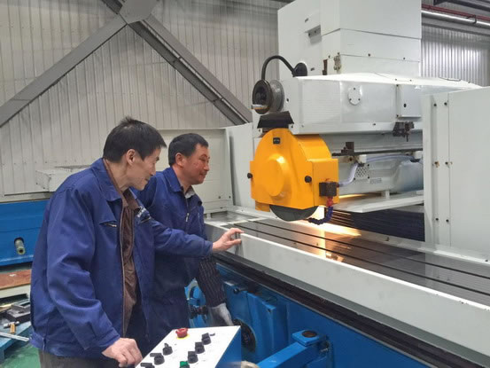 操作工和检验员正在验收出口机床M7150*16/HZ